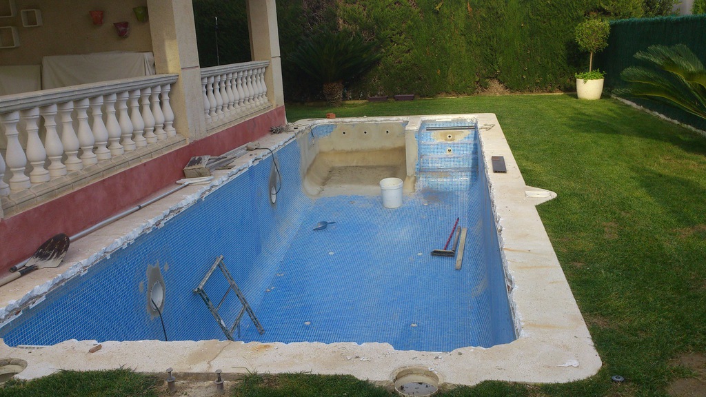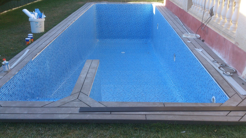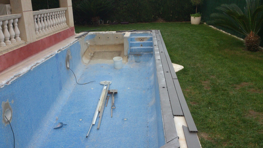 Un ejemplo de rehabilitación y reforma de una piscina con revestimiento vitreo que tenia fugas de agua, donde se le ha instalado una lámina armada para asegurar la impermeabilización total del agua de la piscina.